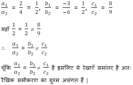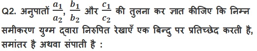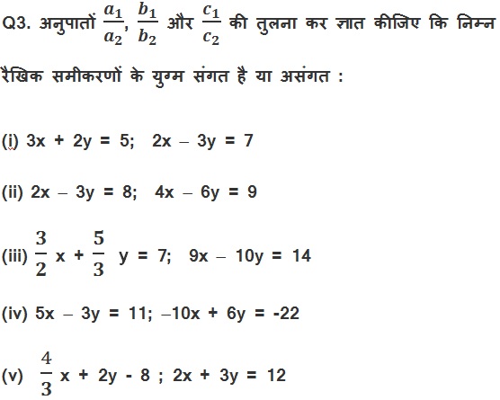 Q4. निम्न रैखिक समीकरणों के युग्मों में से कौन से युग्म संगत /असंगत है, यदि संगत है तो ग्राफीय विधि से हल ज्ञात कीजिए |