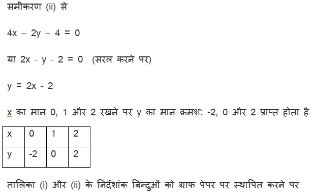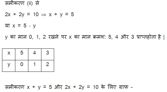अब x का मान 0, 1 और 2 रखने पर y का मान क्रमश: 1, 2 और 3 प्राप्त होता है जिसकी तालिका निम्न है –