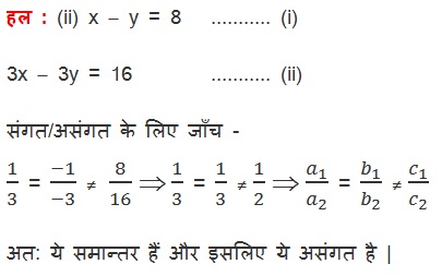 (ii) 2x - 3y = 8; 4x - 6y = 9