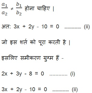 Q6. एक रैखिक समीकरण 2x + 3y - 8 = 0 दी गई है | दी चरों में एक ऐसी और रैखिक समीकरण लिखिए ताकि प्राप्त युग्म का ज्यामितीय निरूपण जैसा कि