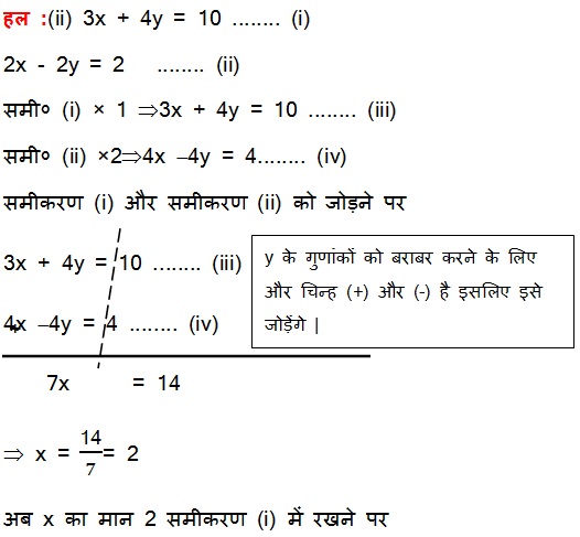 (ii) 3x + 4y = 10 और 2x - 2y = 2