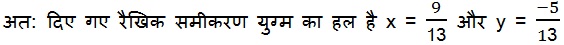 अत: दिए गए रैखिक समीकरण युग्म का हल है x = 2 और y = 1
