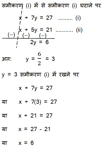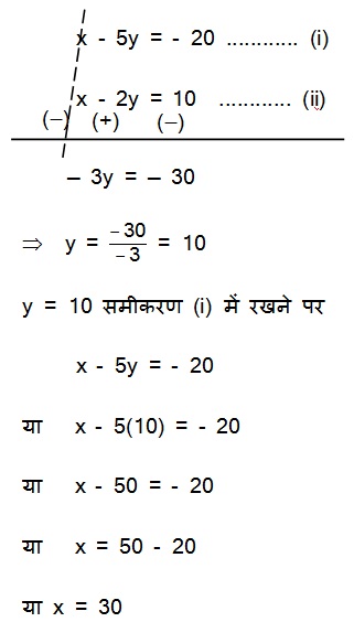अब समीकरण (i) में से (ii) घटाने पर