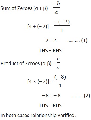 Hence verified the relationship between coefficients and the zeroes in both cases.