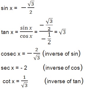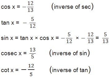 Find the values of other five trigonometric functions in Exercises 1 to 5.