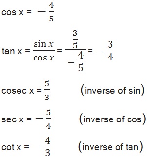 ∴ sin and cosec are positive in the second quadrant but remain all trigonometry ratios are negative;
