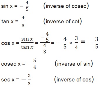 ∴ tan and cot are positive in the third quadrant but remain all trigonometry ratios are negative;