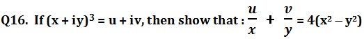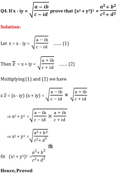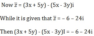 Q14. Find the real numbers x and y if (x – iy) (3 + 5i) is the conjugate of –6 – 24i.