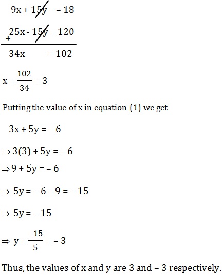 Multiplying equation (i) by 3 and equation (ii) by 5 and then adding them,