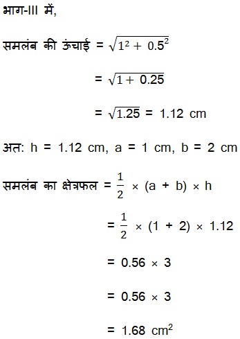 हवाई जहाज का क्षेत्रफल = 2.49 cm2 + 6.5 cm2 + 1.68 cm2 + 4.5 cm2 + 4.5 cm2